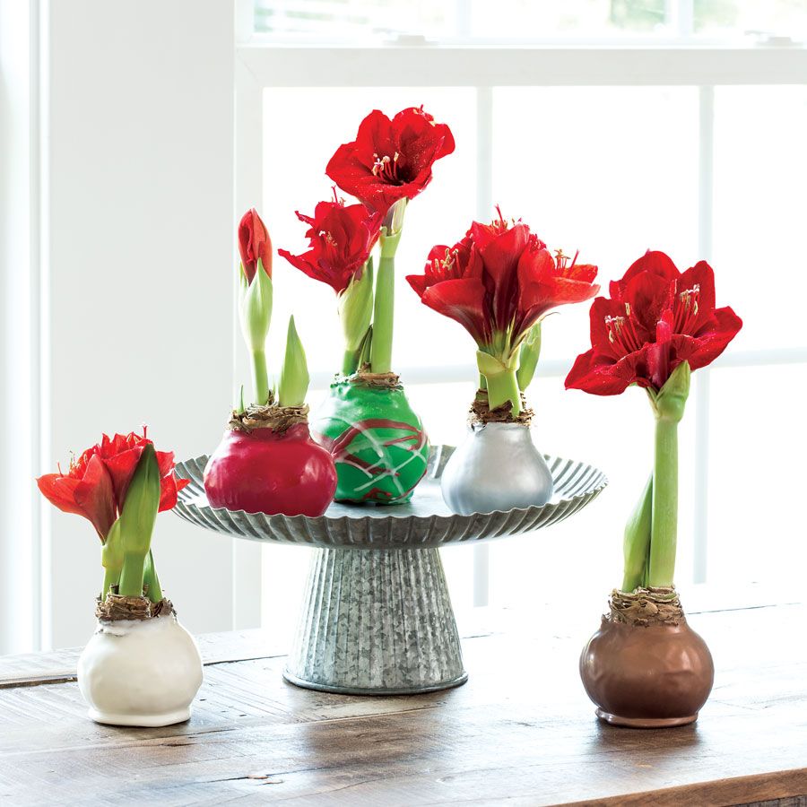Finally, after all this time, I wondered, how they do what they do? What is the secret of the waxed amaryllis bulbs? As we all now know, just ask Google. And sure enough, there were several posts on how to make your own waxed bulbs, complete with videos and explanations. To summarize: soak the bulbs in water for several hours, let them dry a bit, cut off their roots and basal plate (the bottom) and dip them in wax. The reason for removing the basal plate is that, without their roots, the bulb puts all its energy into blooming.