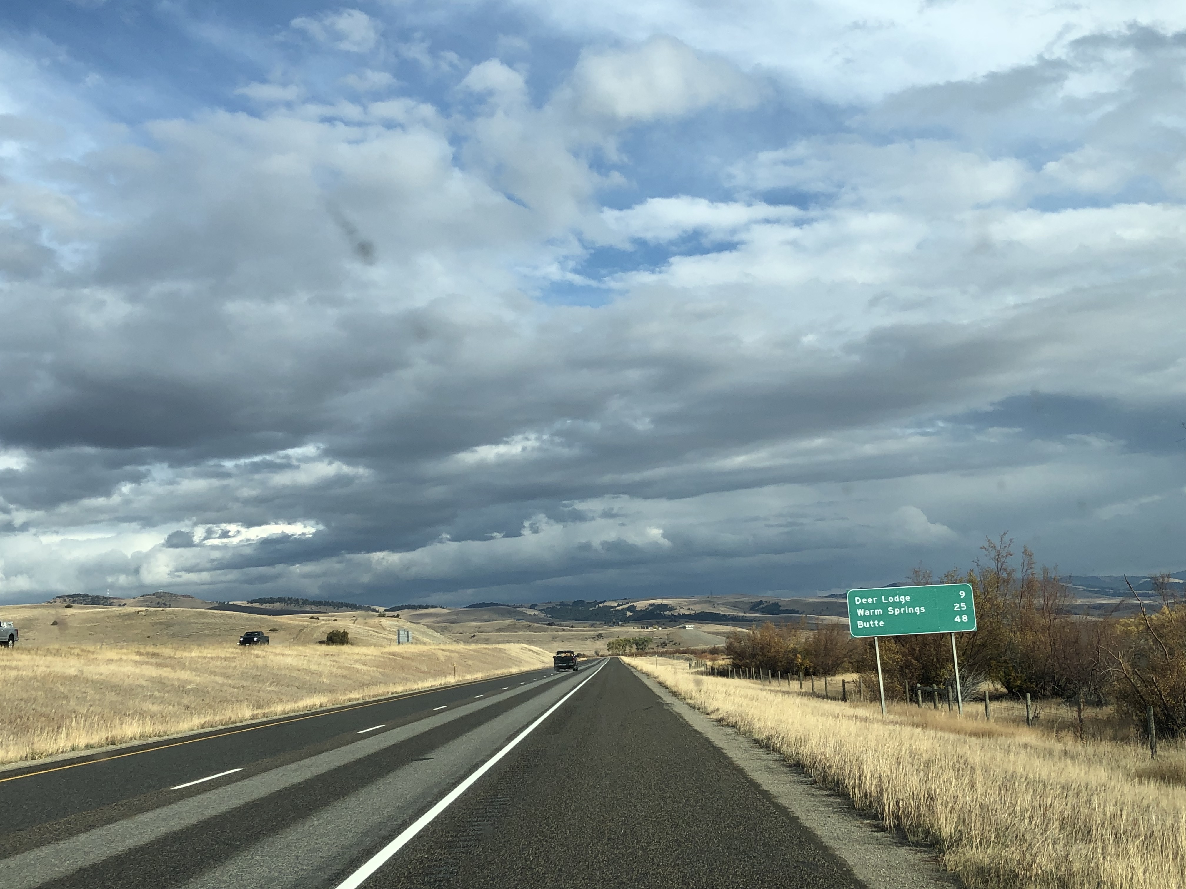 At one of the rest stops today, near Butte, I felt cracked open by the magnificence of what I was seeing. I called the same friend who called me yesterday. “I am in awe,” I said to her and, just as I did yesterday, started crying. But these were different tears, though they came from just as deep a place. It was like my soul was being held and enlivened by the dynamic ever-changing sky and land, and I ached with thankfulness for the privilege of having this experience, so grateful my body and brain and finances are still able to do it.