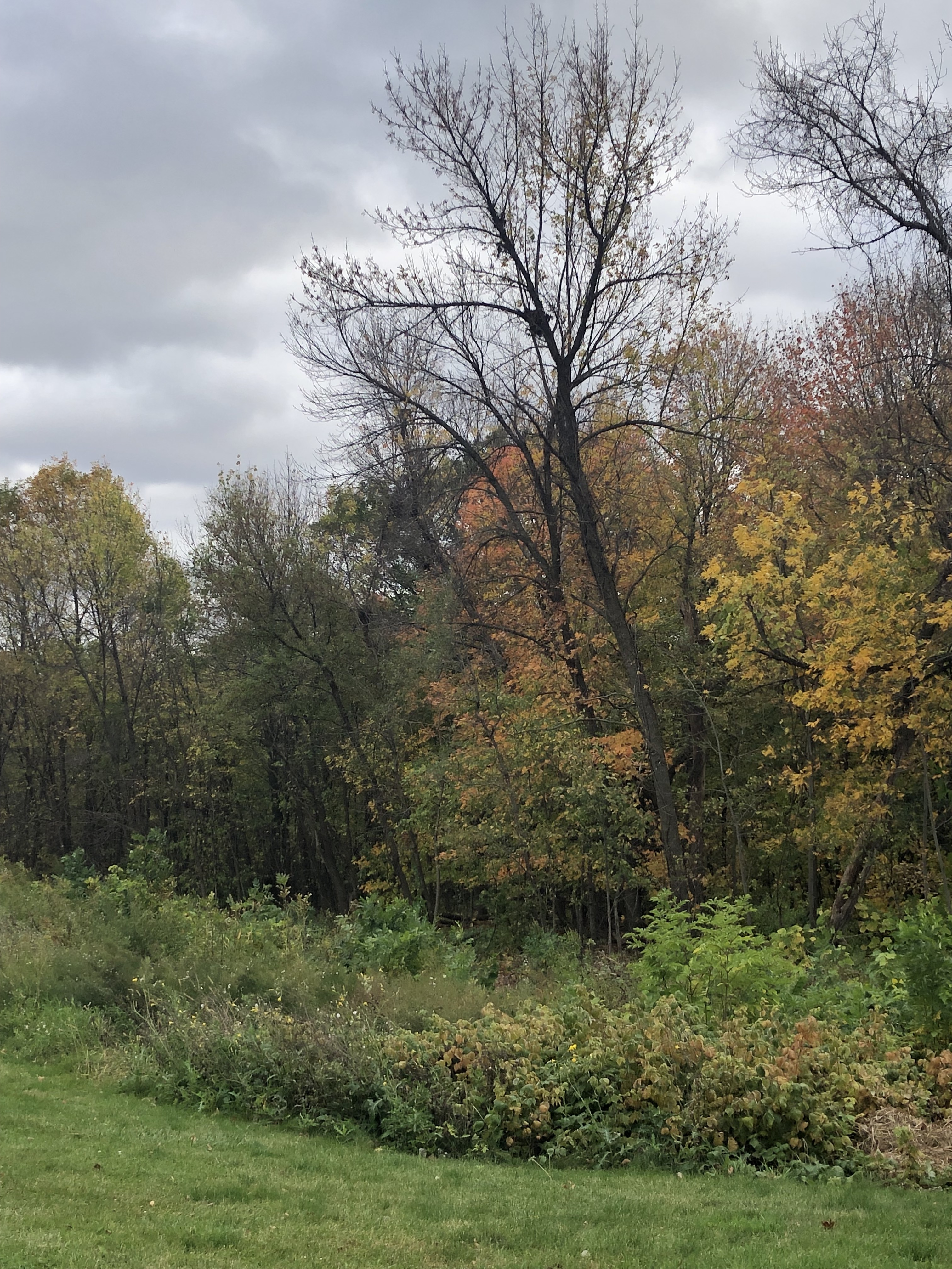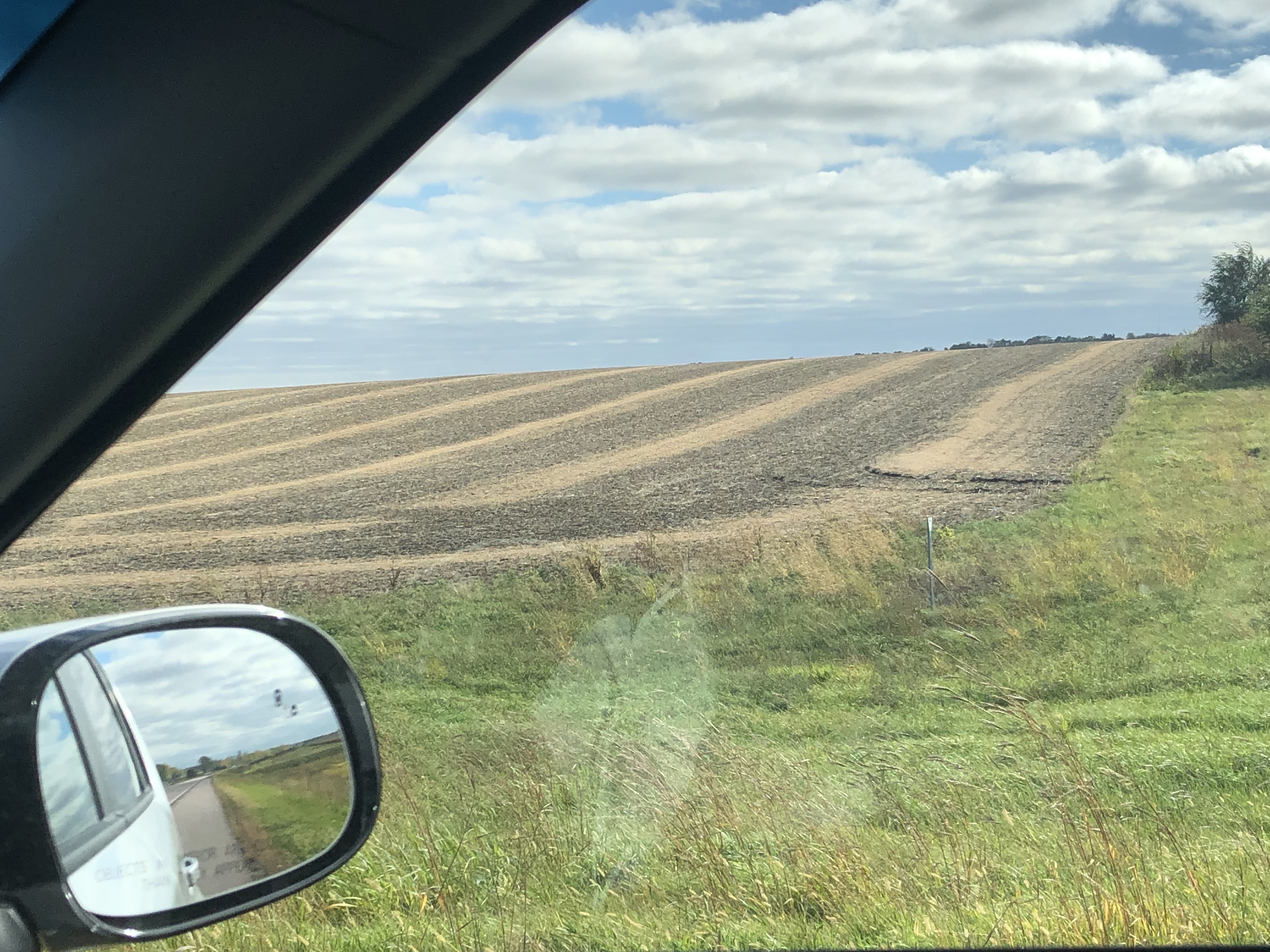 Next stretch is more that two hours. The country I’m driving through, as I head east and north in Minnesota, looks right to me. The shapes of the trees, some of them bare already, others clad in orange and gold. I love the evergreens of the Pacific Northwest, and appreciate their presence, but I am seeing now very clearly why it never felt like home to me. This is not the Northeast, but not only is it geographically closer to where I come from, but there’s something in its essence that feels deeply familiar. Crossing the mountains and the plains, watching the land transform into farmland, I can feel myself starting to rest into it. There is no other way I could have appreciated how the land smooths itself out, how natural the transition is, how beautiful that open flatness is. And I love the sight of huge silver silos and wind turbines among the corn and freight trains.