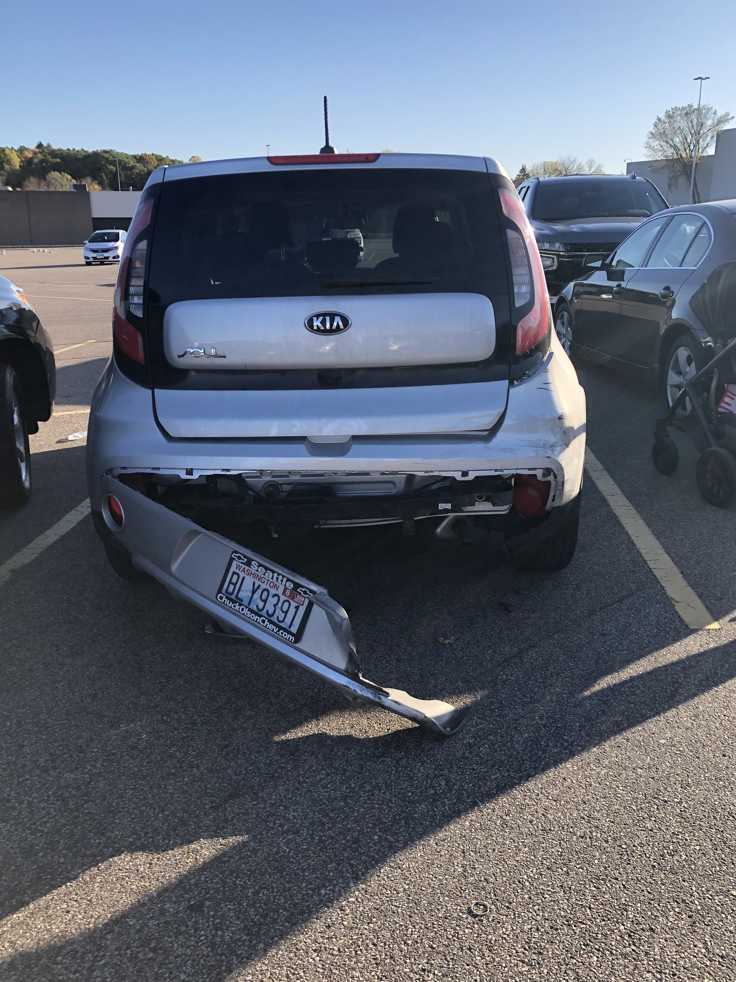 And now here I am going over details in an effort to process it. In the moment, I was focused on calling the police, calling my friend, asking the witnesses to stay, calling the insurance company, taking pictures of what was left of the rear bumper of my car. In one of life’s little ironies, shortly before I left Seattle, I had some body work done on that same rear bumper to take care of a couple small scrapes that I thought would make the car vulnerable to rust and whatnot in the land of snow and salt. I could have saved myself the money.