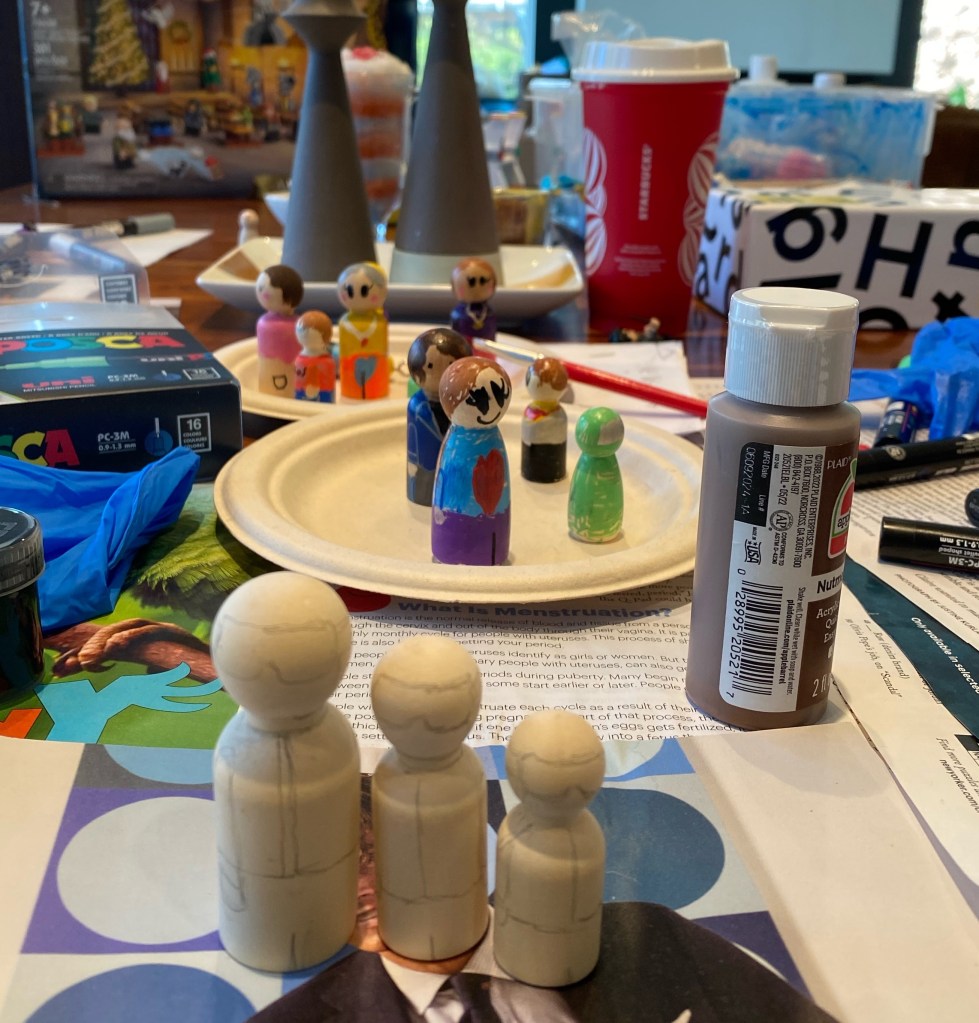 My daughter and I have been painting peg people of our loved ones. She’s finishing up her Ruth. I’m working on one too, but my glasses technique needs some work.
